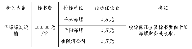1.標的內容:華煤各礦點至平涼海螺、千陽海螺及金陵河公司煤炭運輸。