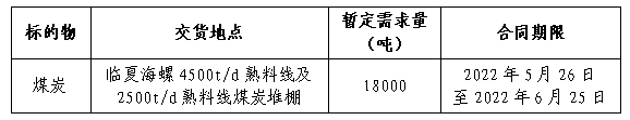 為做好我公司2022年6月份煤炭采購工作,滿足生產(chǎn)需要,本著“公開、公平、公正”的原則,擬對煤炭貿(mào)易渠道供貨進行公開招標,現(xiàn)將招標采購信息發(fā)布如下: