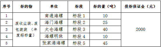為做好上海區(qū)域各子公司(南通海螺、張家港海螺、海門海螺、太倉海螺、海螺明珠)固廢處置工作,防范環(huán)保稽查風險,由張家港海螺牽頭對上海區(qū)域各子公司固危廢物資處置進行招標,現將具體招議標工作安排如下: