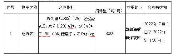 根據(jù)我公司生產(chǎn)需求,本著“公開、公平、公正”的原則, 擬對2022年三季度粉煤灰需求粉煤灰進行公開招標(biāo),為進一步 體現(xiàn)公開、公平、公正的原則,歡迎具備條件的單位參加,現(xiàn)將 招標(biāo)相關(guān)事宜公告如下: