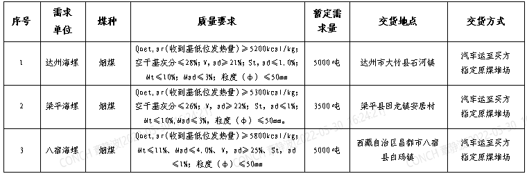 為進(jìn)一步提升煤炭采購招標(biāo)的公平、公正、公開透明性,根據(jù)區(qū)域2022年6月份煤炭需求,現(xiàn)組織開展煤炭采購網(wǎng)絡(luò)招標(biāo),特將招標(biāo)事宜公告如下: