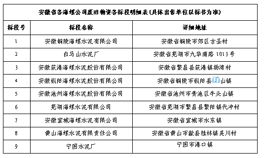 招標人:安徽海螺水泥股份有限公司白馬山水泥廠