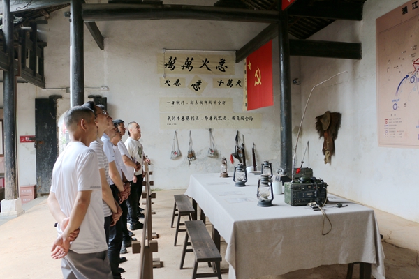 興安縣界首紅軍堂,原名三官堂,位于興安縣界首鎮(zhèn)。1934年紅軍長征突破湘江時,朱德、楊尚昆在三官堂設(shè)立指揮部指揮紅軍渡江。指揮部舊址的大廳墻壁上,懸掛著紅軍渡湘江時的文字資料和圖片,大家安靜地凝視著一張張泛黃的照片、一件件珍貴的歷史文物,聆聽著一段段感人事跡,仿佛置身于那段崢嶸歲月。